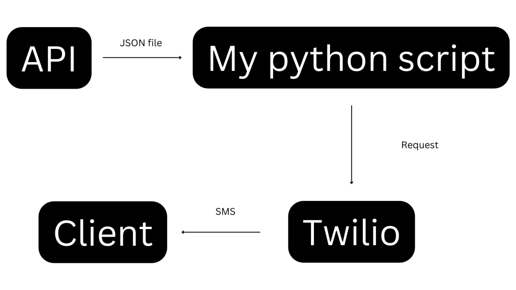 I hosted the script on a Raspberry Pi 4B and used SSH in vscode to remotely edit code on the raspberry pi. So let’s focus on my script. I used the Beautiful soup Module in python to make a request to the api web address and retrieve a json file that can be read to see all the camera statuses. Then if one was offline I used twilio to send a SMS alerting the client of the camera that is offline.